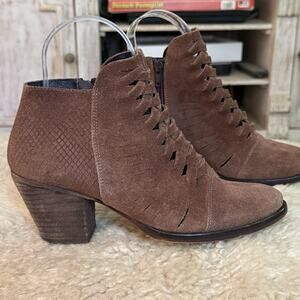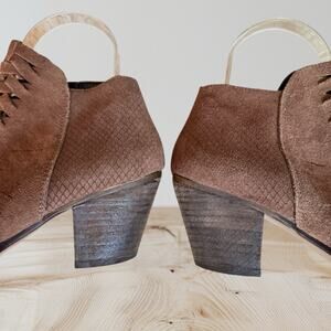 Free People Womens Suede Loveland Heeled Ankle Boot Size 36 Brown Western Pirate Laser Cut Upper ..
