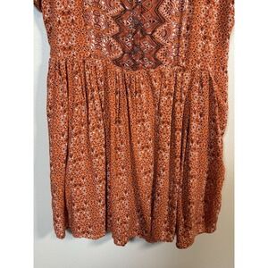 Free People Women's Sundown Babydoll Dress T Back Scoop Neck Lined Boho Orange Size Large