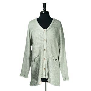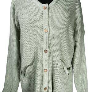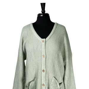Free People Women’s Sweater S Green Waffle Knit Button Oversized Boho Cardigan