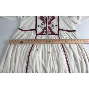Your new favorite billowy midi featured in a soft fabrication and shapeless silhouette with intricate embroidery and cool contrast trim throughout.