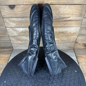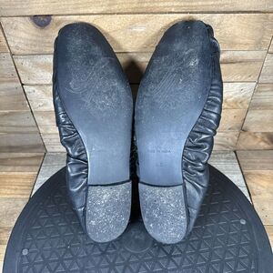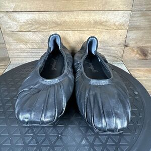 Free People Womens Sz 6.5 Ruched Black Leather CARA Elasticized Ballet Flats