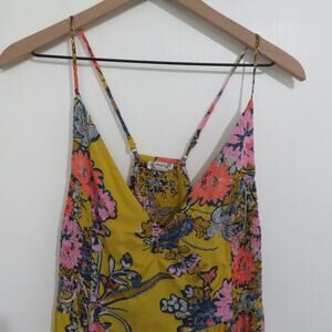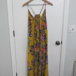 Free People Womens Sz L Yellow Floral Through the Vine Maxi Dress Boho Breezy