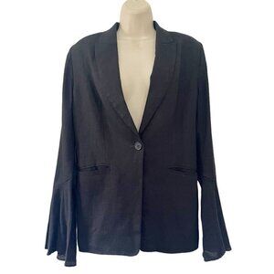 Free People Women's Sz S Black Linen Blend Bell Flared Sleeve Blazer Jacket