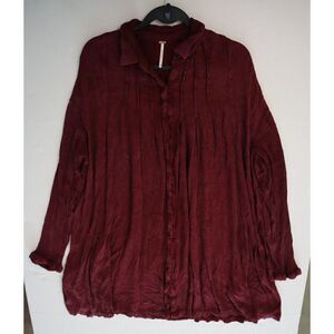 Free People Women's Sz XS Maroon Spin Me Oversized Button Down Shirt Dress