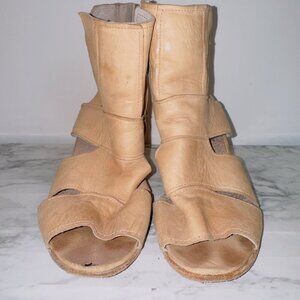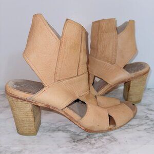 Free People Women's Tan Leather Effie Block Heel Shoes size EUR 40