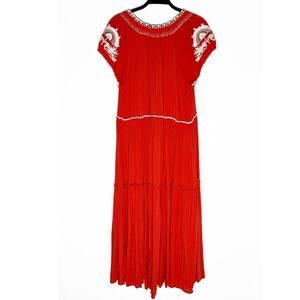 Free People Women's Ticket Paradise Boho Maxi Dress Gauzy Embroidered Tiered XS