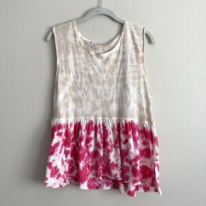 Free People Womens Tie Dye Anytime Hot Hibiscus Combo Tank Top Size Small. We the Free - Free People women's tank top. Round neck. Sleeveless. Lightweight and breathable cotton. Tie dye. Tan and pink. Size small. Measured laying flat: measures 18.25" from armpit to armpit. Measures 20" long from top of tag to hem.