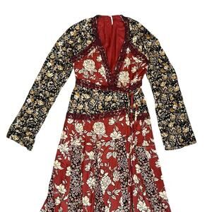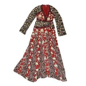 Free People Women’s Tilda Long Sleeve Red White Floral Printed Wrap Maxi Dress
