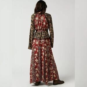 Tags- boho maxi dress, Free People Tilda dress, floral print maxi dress, long sleeve maxi dress, deep v neck dress, fall bohemian dress, festival maxi dress, mixed print dress, romantic boho style, high slit maxi dress, flowy bohemian gown, red floral long dress, Free People boho style, vintage inspired maxi dress, casual bohemian outfit