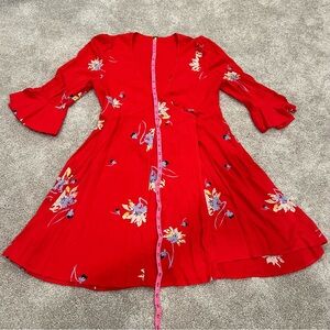 Free People Women's Time on My Side Red Floral Wrap Dress. Size XS.