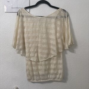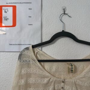 Free People Womens Top Small Cream Lace Coastal Boho Siren Semi Sheer Romantic