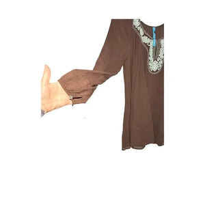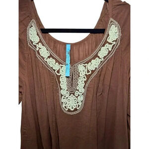 Free People Women’s Tunic Top Cover up Brown with Turquoise Embroidery Size M