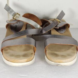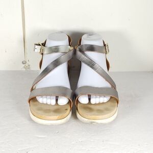 Free People Women's US8,5 EU39 Pewter Metallic Leather Wedge Strappy Sandals