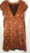 Free People Women's V-Neck Babydoll  Floral Rust Silk Mini Dress Size 12