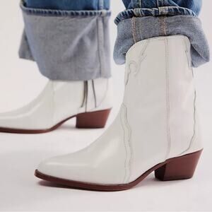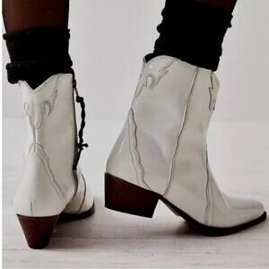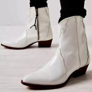Free People | Women’s White Frontier Western Booties Boho Patent Leather Snip Toe
