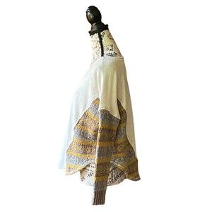 Free People Women's White Green Brown Mixed Media Lightweight Boho Jumper XS