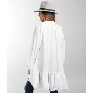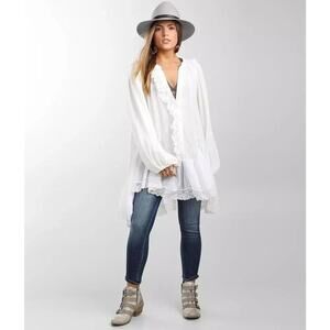 Free People Women's White Jeanette Lace Trim Gauze Tunic Mini Dress Size Medium