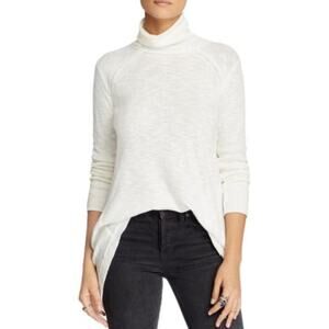 Free People Women's White Split Back Turtleneck Long Sleeves Top Size Large
