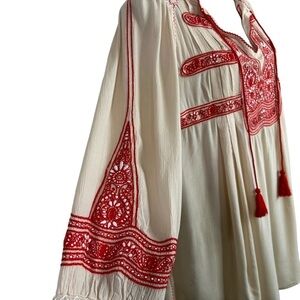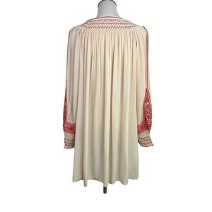 Free People Womens Wind Willow Embroidered Mini Dress Sz Small Cream Red Boho