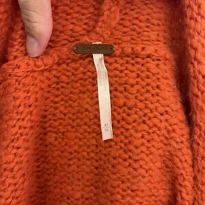 Free People Womens Wool Blend Ribbon Detail Hooded Cardigan Medium Orange Chrty