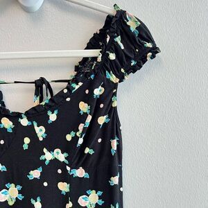 Free People Women’s XS Black Like a Lady Mini Dress Lemon Print Black Combo