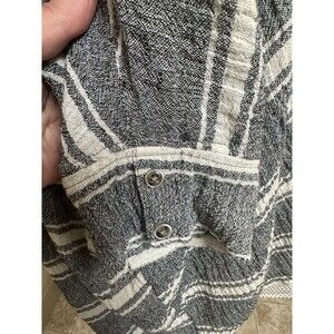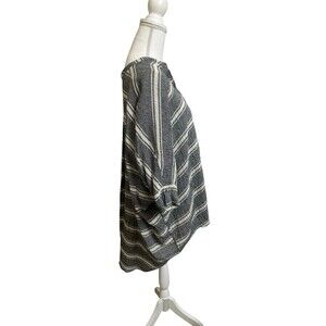 Free People We the Free oversized strip;ed boxy button up relaxed tunic top. Women's size XS but very oversized. Fabric is a cotton linen blend but fabric tag is missing. Color is off white and a gray/black woven in with the white fabric. Stored in a smoke-free environment. High low hem.
