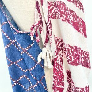 Free People Womens XS Ivory Blue Red Side Tie Tank Top Patriotic