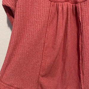 Gently worn Free People Women's Leo Oversized Henley Top Waffle Knit Thermal ~ Wild Rose