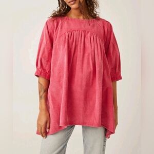 Free People Women's XS Pink Corduroy Puff Sleeve Tunic Top