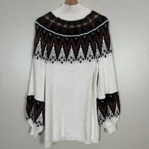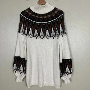 Free People Womens XS Sweater Fair Isle Tunic Dress Turtleneck White Brown