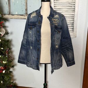 Free People Women's X-Small Distressed Trucker Jean Jacket Button Distressed