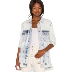 Free People Women's X-Small Distressed Trucker Jean Jacket
