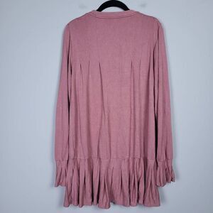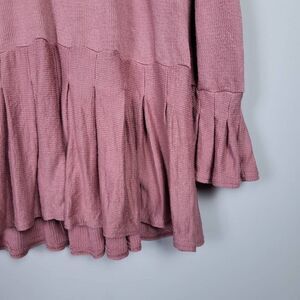 Free People Womens Your Girl Thermal Henley Tunic Top Pink Size Small Boho Ruffle Flowy Oversized Long Sleeve Tiered Waffle Knit Cottagecore Longline Festival Feminine Romantic
