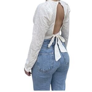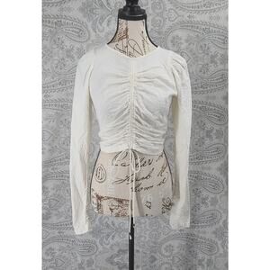 Free People Women's long sleeve crop top cinch front Ivory Size XS Boho Chic