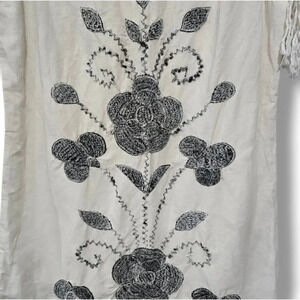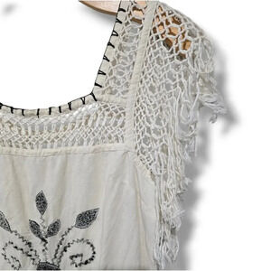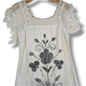Free People Women's off white Embroidery floral boho fringr shift dress - size 2
