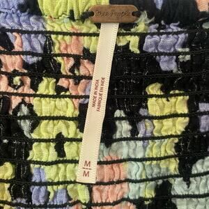Free People Womens size Medium Colorful Floral Cotton Smocked Long Sleeve Blouse