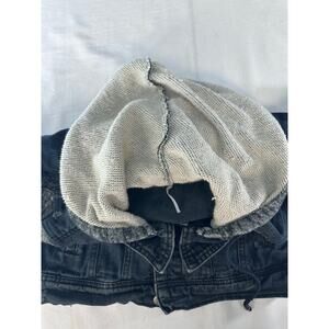 Free People Women's sz M Black Denim and Hooded Sweater Jacket Distressed Cotton