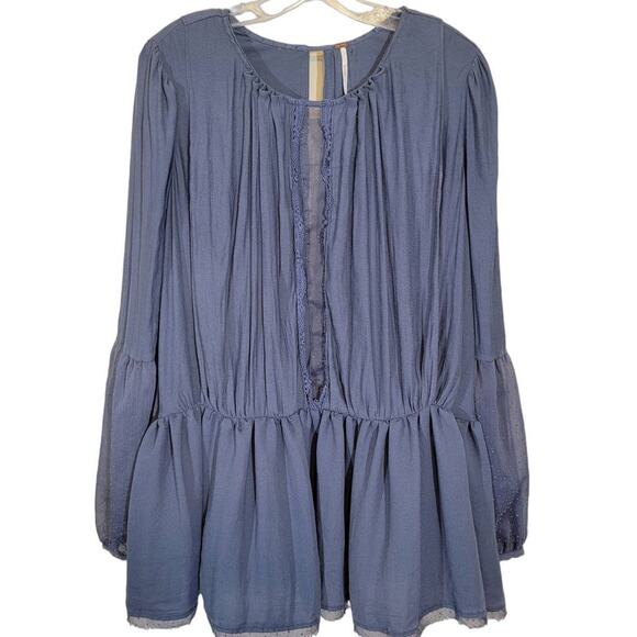 Free People Women's the Soul Serene Top Blouse Sheer Boho Open Back Blue Medium