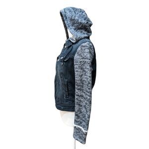 Free People Women's Black & Grey Distressed Denim Jacket Knit Sleeves Size S