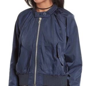 Free People Women's Midnight Satin Bomber Jacket Size M