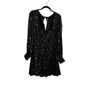 Free People Womn M Black Floral Boho Bishop Sleeves Two Faces Smocked Mini Dress