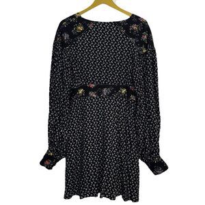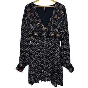 Free People Wonderland Floral Button Up Tunic Dress Size M Black Boho Cottage
