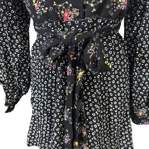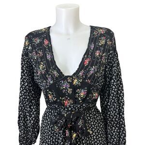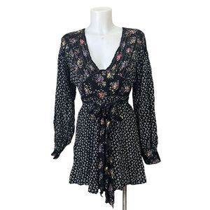 Free People Wonderland Printed A-Line Mini Dress Black Floral sz Small New