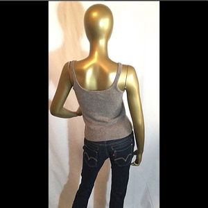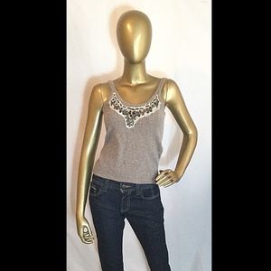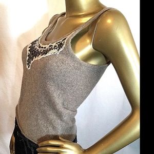 Free People Wool Angora Blend Tank Top Size Small Beaded Embroidered Greige Grey
