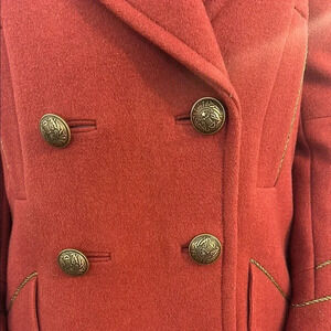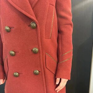 Stay stylish and warm with this elegant rust coat. Featuring a classic double-breasted design, it's perfect for any occasion.