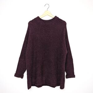 Free People Wool Blend Oversized Slouchy Tunic Sweater Burgundy Purple Size XS/S