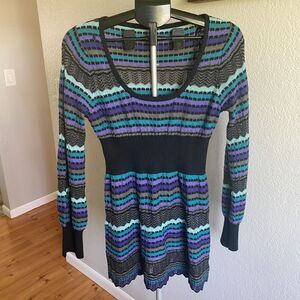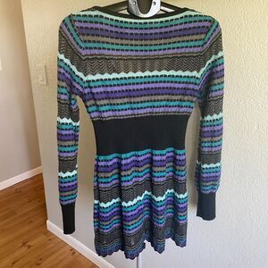 Free People Wool Blend Knit/Knitted Striped Long Sleeve Sweater Dress Women's Size Large. Y2K Style with a gathered sleeve cuff. Ribbed knit waist. Lots of stretch