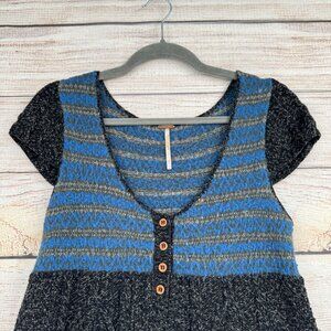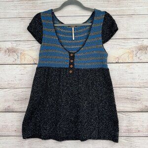 Free People Wool Blend Sweater Shirt Women's Size Medium Blue/Black
