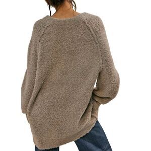 Free People Wool Blend Teddy Sweater Oversized Beige Pullover S Cozy Outdoor