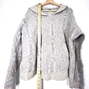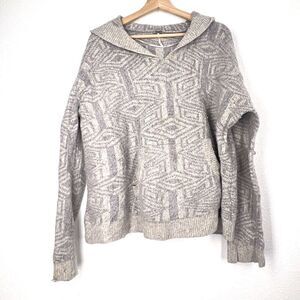 Free People Wool Blend V-neck Sweater womens Size Large Gray White Hooded